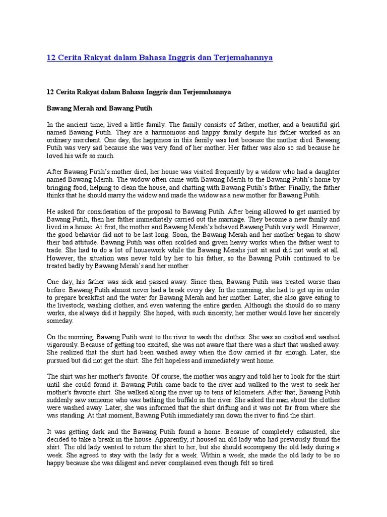 Kumpulan cerita pendek bahasa inggris berbagai tema ini bisa menjadi referensi dan teman . Pernah membaca atau membuat cerpen bahasa inggris? One day, mouse deer went down to the suatu hari, kancil pergi ke . Kumpulan cerpen bahasa inggris terjemahan indonesia. Kalian sedang mencari inspirasi untuk bercerita dengan anak?